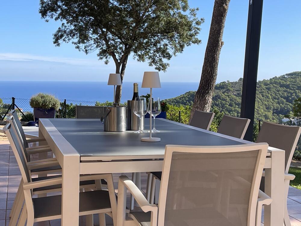 Deze fantastische vakantiewoning in Begur is prachtig gelegen met uitzicht op de baai van Sa Riera en ook op het kasteel van Begur. Deze villa staat in de villawijk Es Valls en heeft een prachtig aangelegde en goed onderhouden, groene en geheel omheinde tuin met veel privacy. De tuin bestaat uit verschillende niveaus en heeft een royaal zwembad van 10×5 meter. Het zwembad beschikt over een chloorarme elektrolytische filterinstallatie. Veel beter voor het milieu en de gezondheid. Het water voelt zachter aan, geeft veel minder irritaties aan huid en ogen en géén indringende chloorlucht.Bij het huis zijn vier terrassen, waarvan twee met een mooie moderne eettafel en dito stoelen. Ook is er een luxe gas-barbecue, één overdekt terras met een heerlijke loungeset, één terras beneden bij het zwembad met loungeset, en één terras met loungeset aan de voorzijde van het huis. Totaal beschikt u over 7 parasols en schaduwdoek.De woning is sfeervol ingericht met openhaard, ruime zithoek met TV, ruime eettafel en stoelen, boeken- en spelletjeskast. De half open keuken is volledig ingericht en beschikt o.a. over een vaatwasser, koel-vrieskast, oven, koffieapparaat, broodrooster, waterkoker. De woning is voorzien van een supersnelle 600 mbps synchrone internetverbinding!In de woning zijn de master bedroom met TV en ensuite badkamer met bad, douche en toilet en nog twee 2-persoons slaapkamers met een gedeelde badkamer met bad, douche en toilet. In de royale studio is een 2-persoonsbed en een badkamer met douche en toilet.Alle slaapkamers zijn voorzien van aircondtioning!De badkamers zijn in 2025 gemoderniseerd.