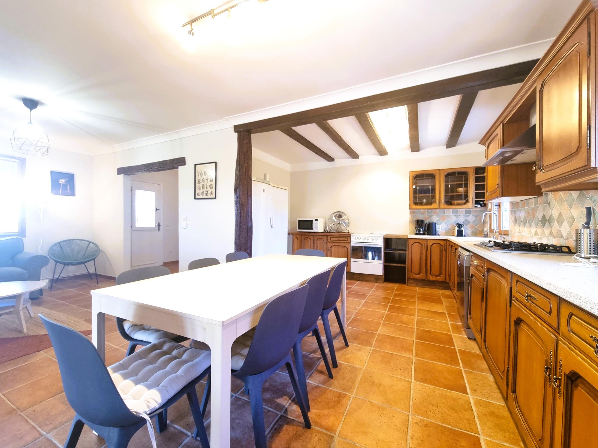 Deze ruime villa voor 8 personen met airconditioning biedt een idyllische omgeving met een groot zonneterras en een privézwembad. Het heeft twee badkamers en een ontspanningsruimte met comfortabele banken en stoelen, perfect om tot rust te komen. Het interieur is goed belicht en met smaak ingericht met open ruimtes, een volledig uitgeruste keuken en stijlvolle slaapkamers. De weelderige tuin en het bedekte terras bieden een prachtig uitzicht, ideaal om gezellig samen te zijn