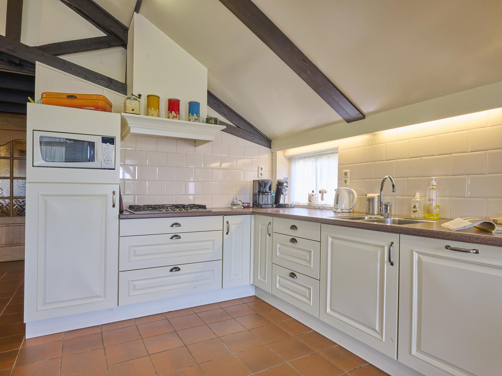 Begane grond: open keuken met waterkoker, fornuis(gas), koffiezetapparaat(filtermaling), oven, magnetron, afwasmachine, koelkast, vriezer , woon/eetkamer met TV, eettafel, zithoek , slaapkamer met 2x 1-pers. bed , slaapkamer met 2-pers. bed , badkamer met douche, 2x wastafel, wc , 1x kinderbed (excl. beddengoed)