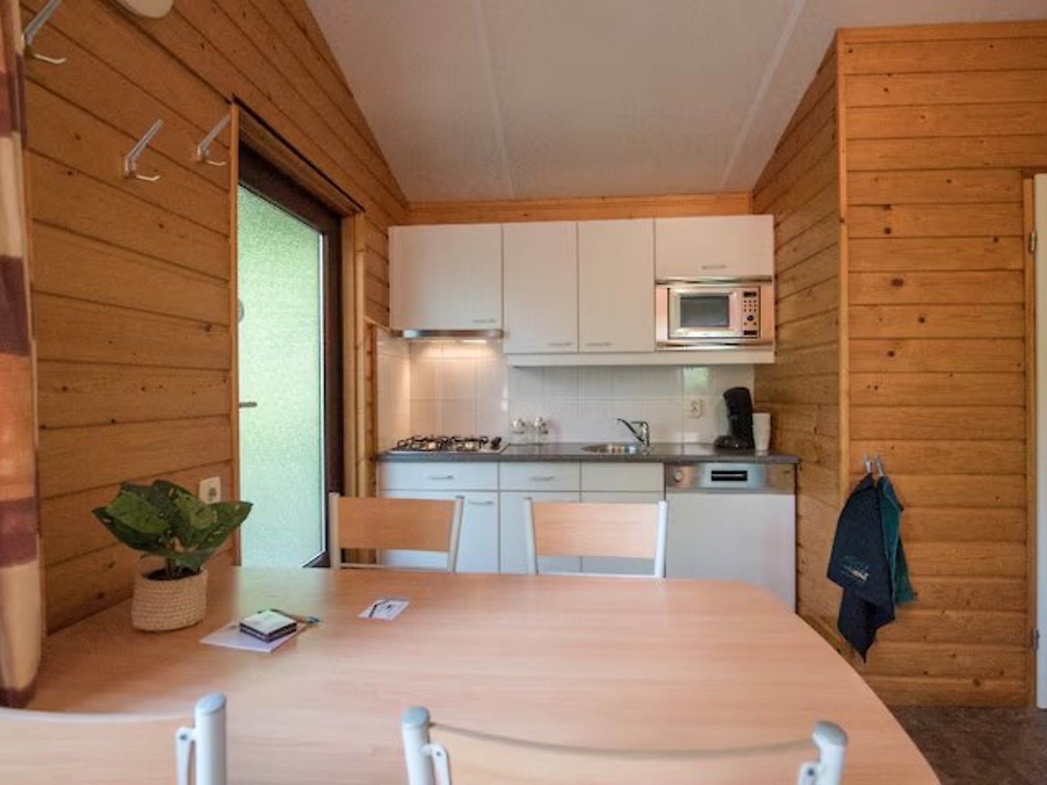Begane grond: open keuken met waterkoker, fornuis, koffiezetapparaat(senseo pads), combimagnetron, afwasmachine, koelkast, vriezer , woon/eetkamer met TV, eettafel, zithoek , slaapkamer met 2-pers. bed , slaapkamer met stapelbed , badkamer met douche, wastafel, wc