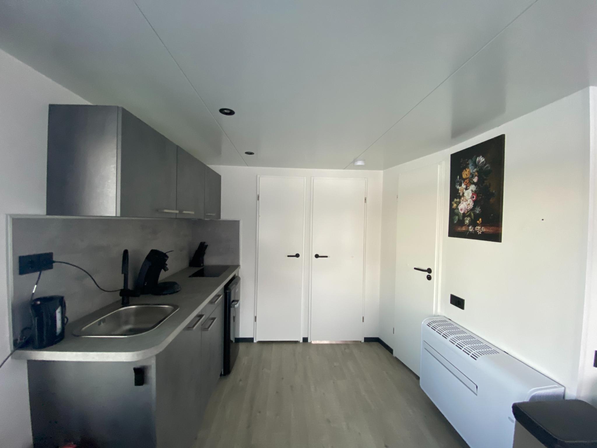 Begane grond: open keuken met kookplaat(2 kookplaten), waterkoker, koffiezetapparaat(pads), koelkast , woon/eetkamer met 2-pers. slaapbank, TV, eettafel , slaapkamer met 2-pers. bed , slaapkamer met stapelbed(80 x 200 cm) , badkamer met douche, wastafel, wc, haardroger , airconditioning