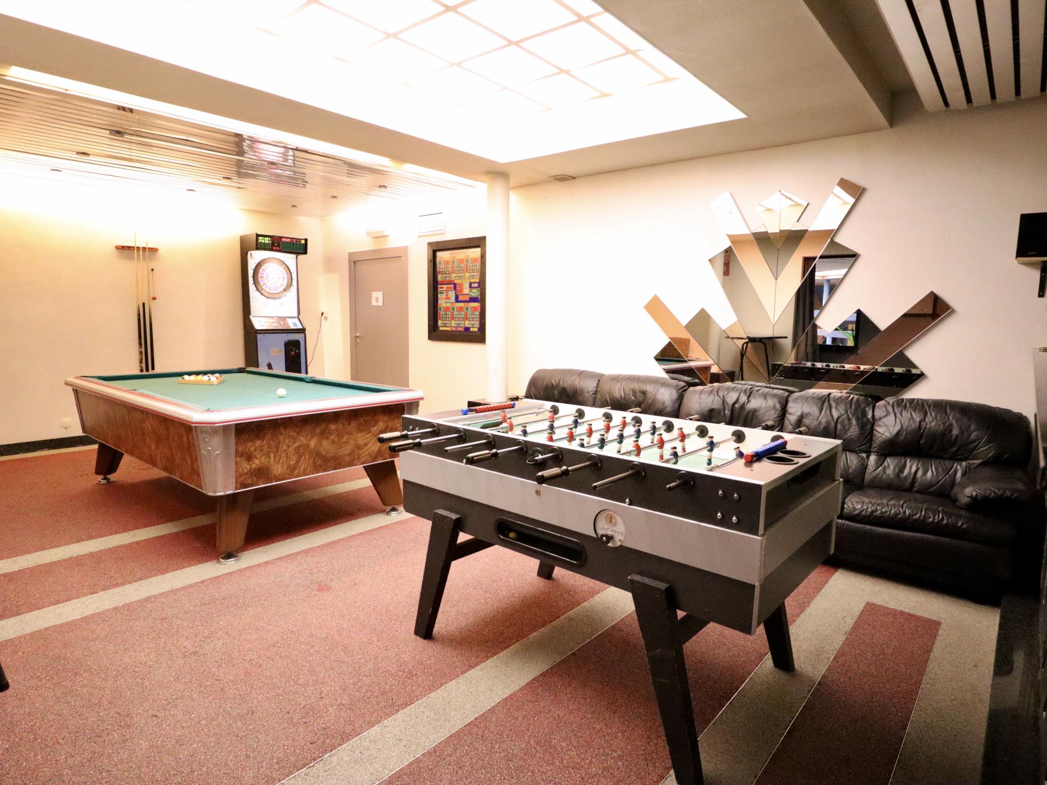 Een mooie jeugdherberg, volledig uitgerust voor een gezinsvakantie: overdekt zwembad met tegenstroomsysteem, sauna, roze whirlpool, bar, speelzaal met biljart, tafelvoetbal en darts!
