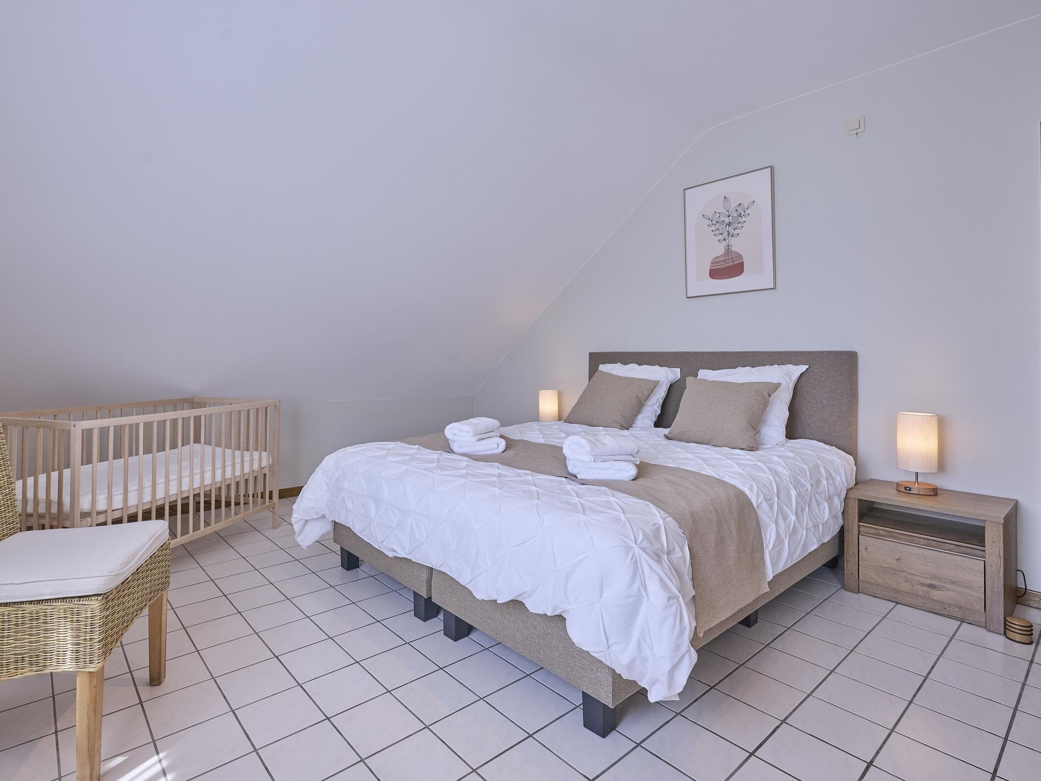 Op de 1e etage: slaapkamer met 2-pers. bed, TV , slaapkamer met 2-pers. bed, TV , slaapkamer met 2x 1-pers. bed , doorloop slaapkamer met 2-pers. bed, 1x kinderbed (excl. beddengoed) , badkamer met ligbad, douche, 2x wastafel, wc