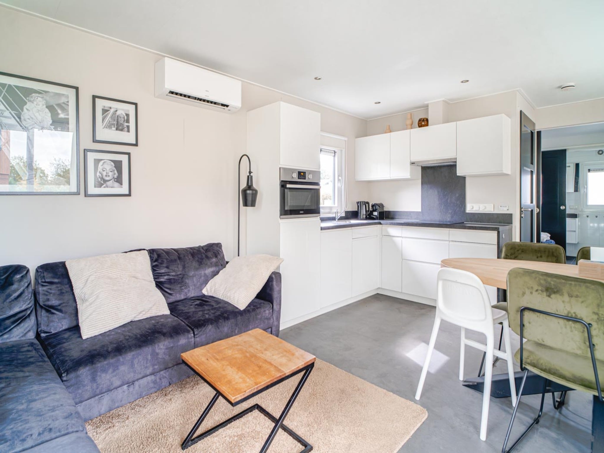 Begane grond: open keuken met kookplaat(4 kookplaten, inductie), waterkoker, afzuigkap, koffiezetapparaat(nespresso cups), combimagnetron, afwasmachine, koelkast(+ vriesvak) , woon/eetkamer met TV(flatscreen, smart TV), eettafel, zithoek , slaapkamer met badkamer met 2-pers. bed(2 éénpersoonsbedden, 2 x 1 persoons dekbed), douche(inloopdouche, Regen), wastafel, wc, verwarming(elektrisch) , toilet met wc , airconditioning