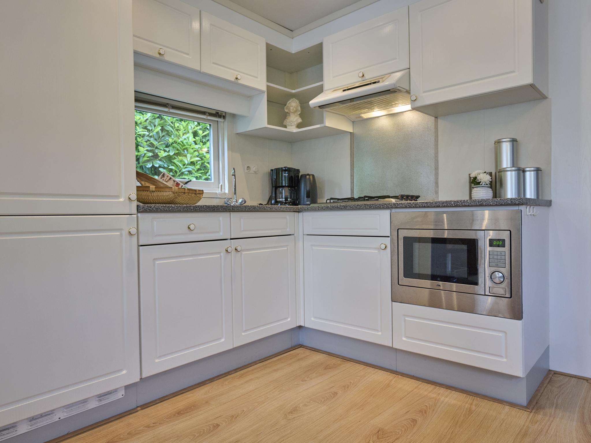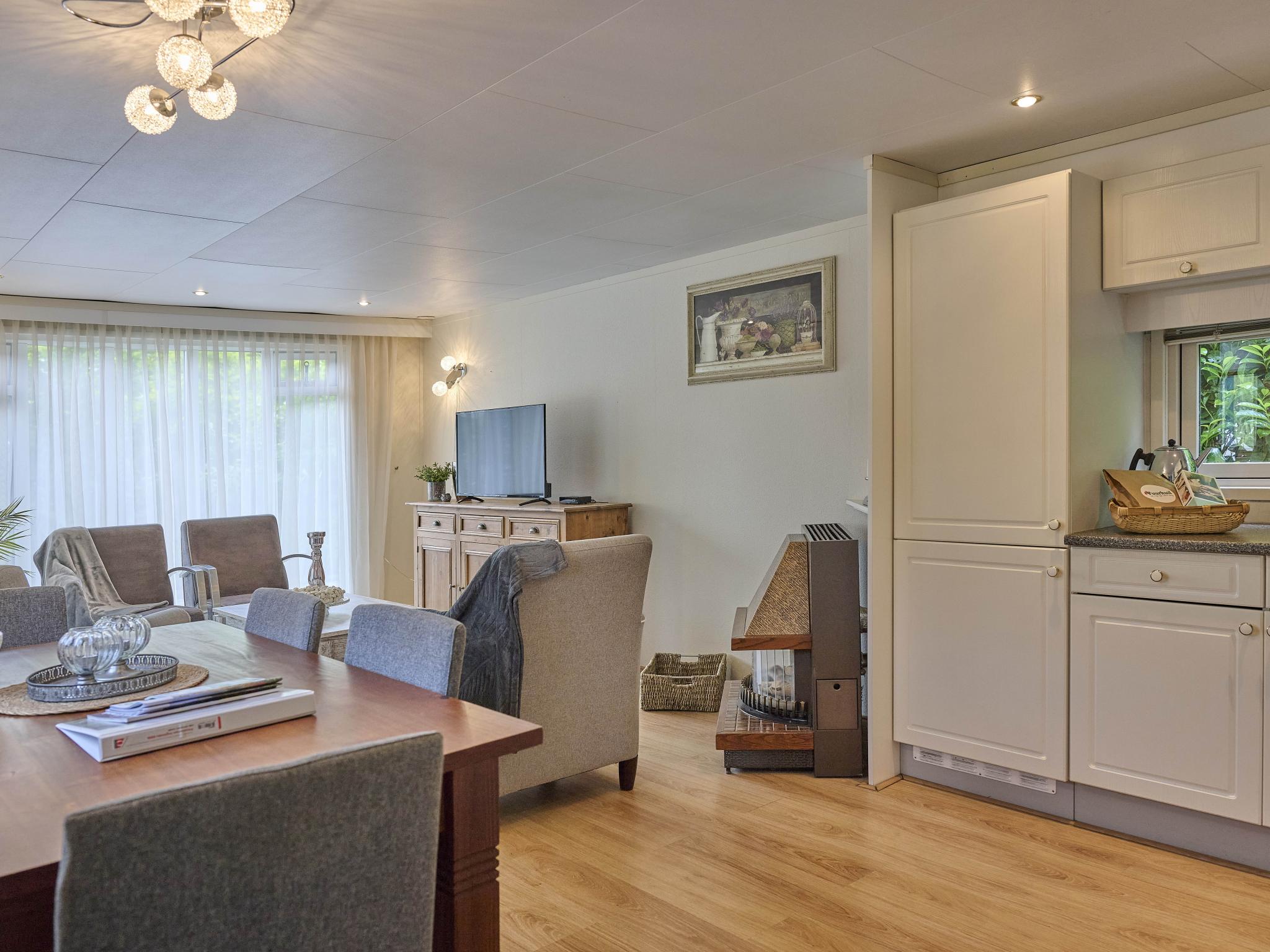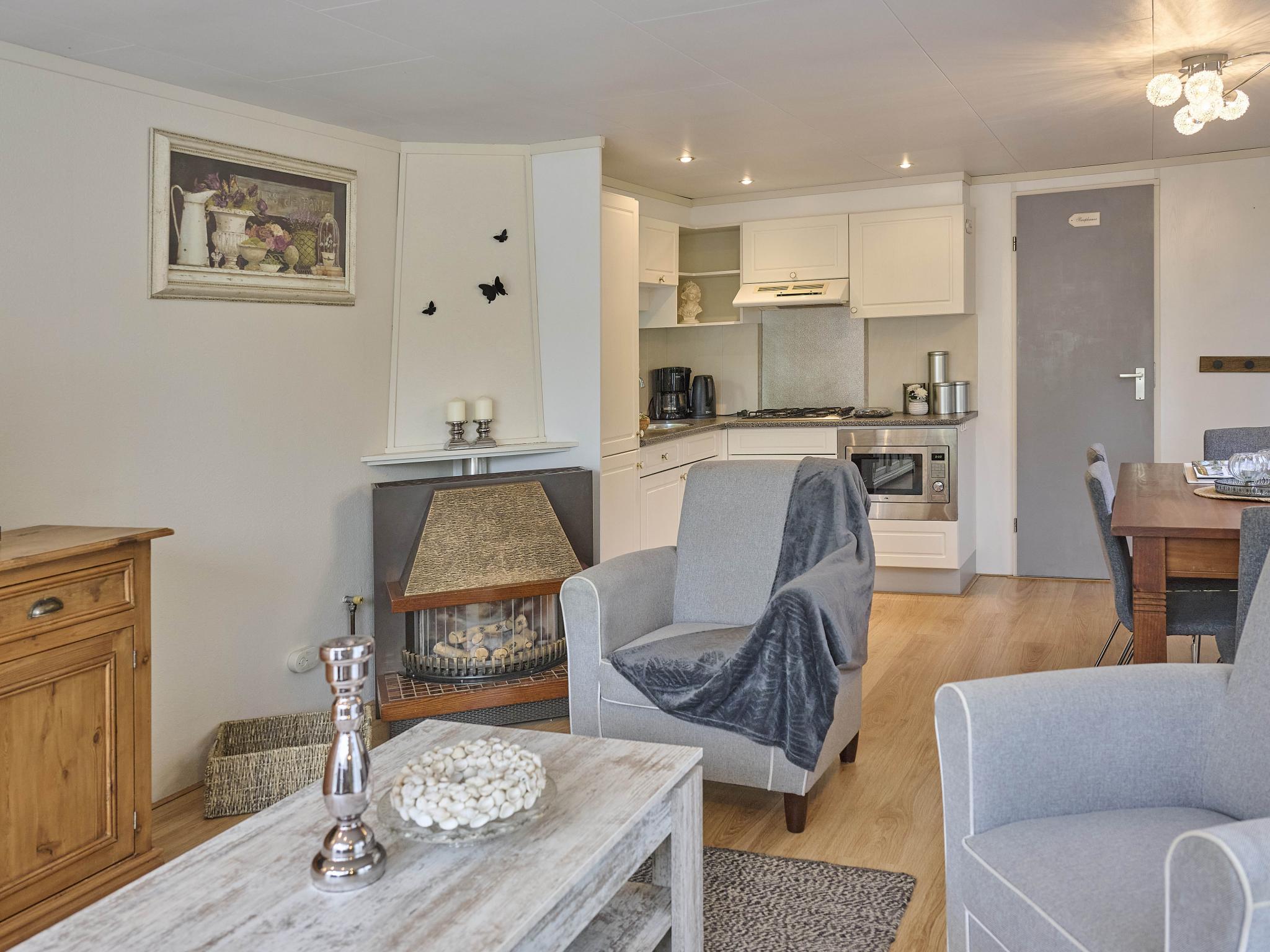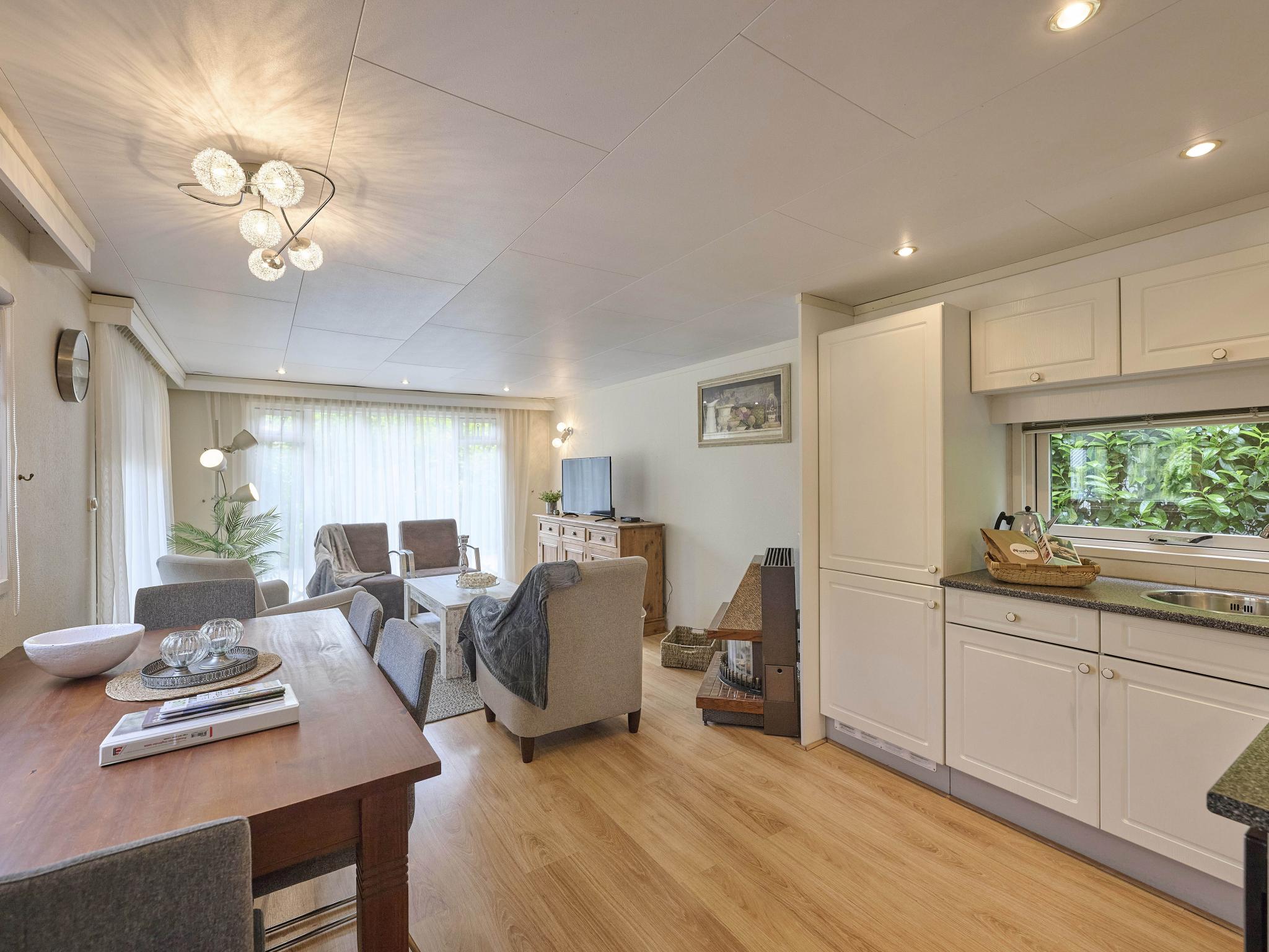 Begane grond: open keuken met kookplaat(4 kookplaten, gas), waterkoker, afzuigkap, koffiezetapparaat(filtermaling), combimagnetron, koelkast, vriezer , woon/eetkamer met TV(Nederlandse zender(s), Duitse zender(s)), eettafel(4 personen), kachel(gas) , slaapkamer met 2x 1-pers. bed(80 x 200 cm) , slaapkamer met 2x 1-pers. bed(70 x 200 cm) , badkamer met douche, wastafel , toilet