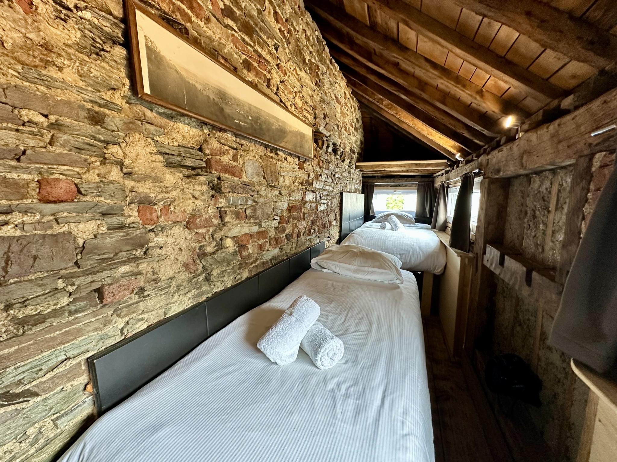 Het bijzondere aan dit huis is dat het maar 140 cm diep is, en tegelijkertijd 8 meter lang. Een uniek en origineel huis in het hart van Spa! Het huis is verdeeld over 4 verdiepingen: de hal, de eerste verdieping met een slaapkamer met drie bedden, waaronder een stapelbed, en de badkamer, de tweede verdieping met de keuken en nog een slaapkamer met 2 bedden, en de bovenste verdieping met uitzicht op het stadscentrum